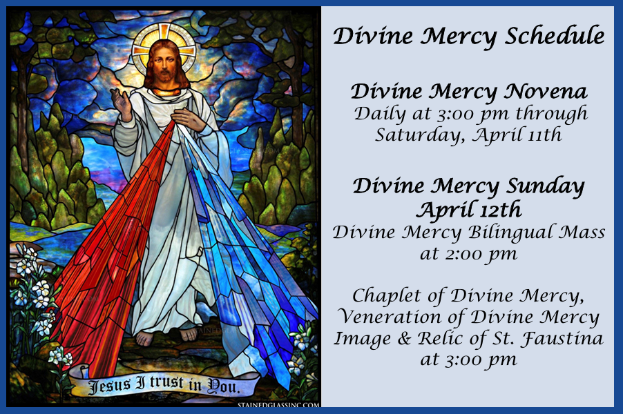 The first Sunday after Easter is Divine Mercy Sunday, also known as the Feast of Mercy.